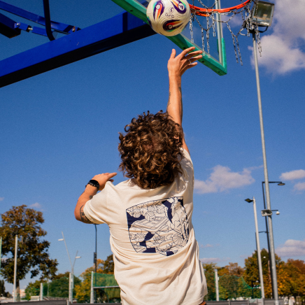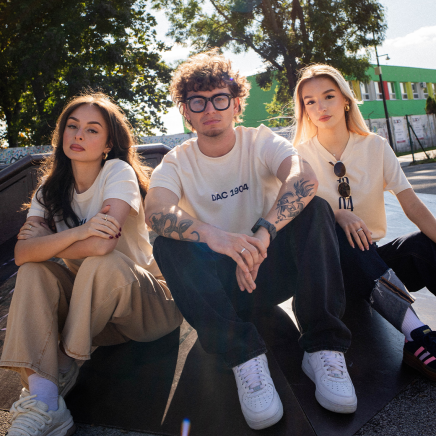 Natural raw bézs színű, regular fit szabású férfi póló a LINE 1904 kollekcióból. Elöl a mellrészen sötétkék színű „DAC 1904” felirattal. Alsó részén egyedi részletgazdag varrás, DAC logós textil címkével díszítve. Hátul, a póló közepén a DAC címer körvonala jelenik meg, amelybe finoman belesimulnak Dunaszerdahely és Csallóköz szimbólumai. Letisztult, mégis karakteres megjelenés, ideális mindennapi viselethez. A LINE 1904 kollekció a DAC vizuális nyelvének újraértelmezése – múlt, jelen és jövő összekötése egy vonal mentén.