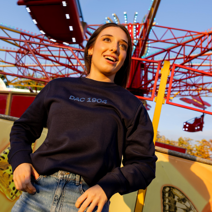 LINE 1904 kollekciójának része ez a stílusos, unisex roundneck (kapucni nélküli) pulóver, sötétkék színben. Elöl DAC 1904 felirat dombornyomott (puff) effekt technikával. Letisztult forma, karakteres megjelenés. Alsó részén egyedi részletgazdag varrás, DAC logós textil címkével díszítve. A LINE 1904 kollekció a DAC vizuális nyelvének újraértelmezése – múlt, jelen és jövő összekötése egy vonal mentén.