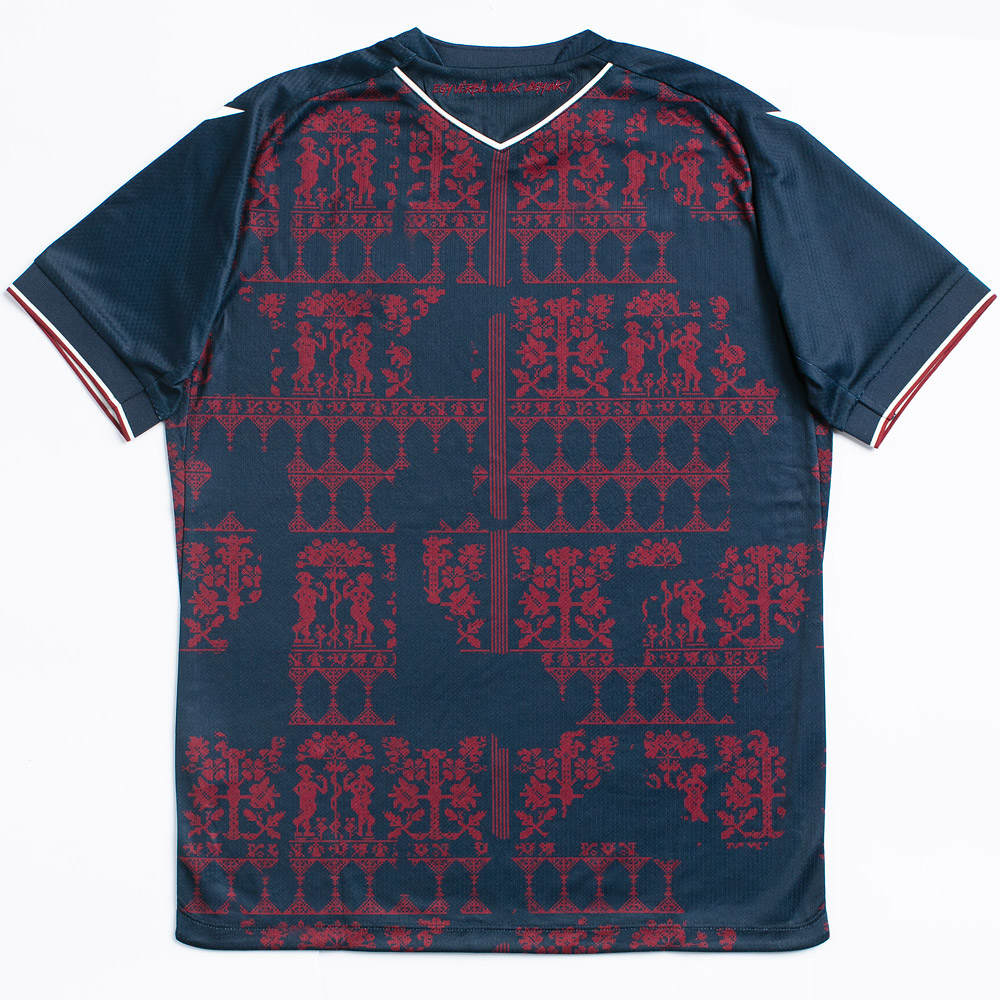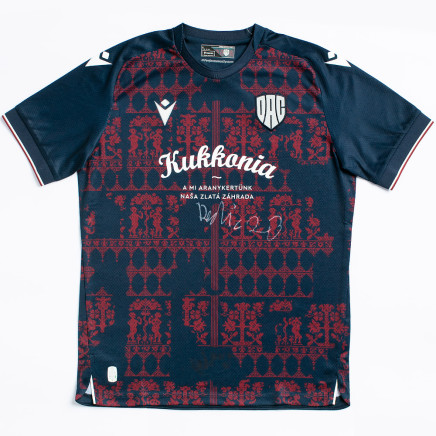 Naša nová vonkajšia súprava je inšpirovaná motívmi z regiónu Žitného ostrova. Výrazným prvkom na drese je výšivka Adama a Evy – tradičný vzor, ktorý odráža vieru našich predkov. Dominantné farby, bordová a tmavomodrá, pôsobia vážne a vyžarujú silu. Táto kombinácia farieb spolu s regionálnymi vzormi vytvára jedinečný dojem – presne taký, aký sa hodí k zápasovému dňu, ktorý prežívame ako sviatok.